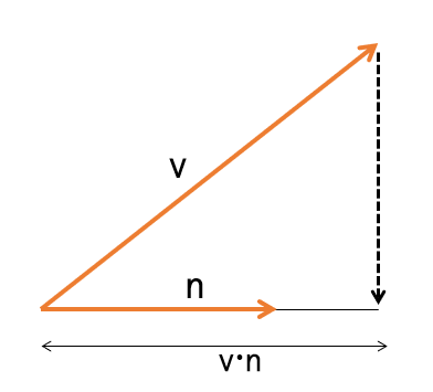즉, 어떤 vector V를 단위벡터 N에 내적한다면, V의 N의 방향으로의 길이를 구할 수 있다.