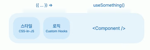 로직 : 컴포넌트에 쓰이는 UI 조직에 필요한 커스텀 로직 ㅣ 커스텀 훅 형태로 작성