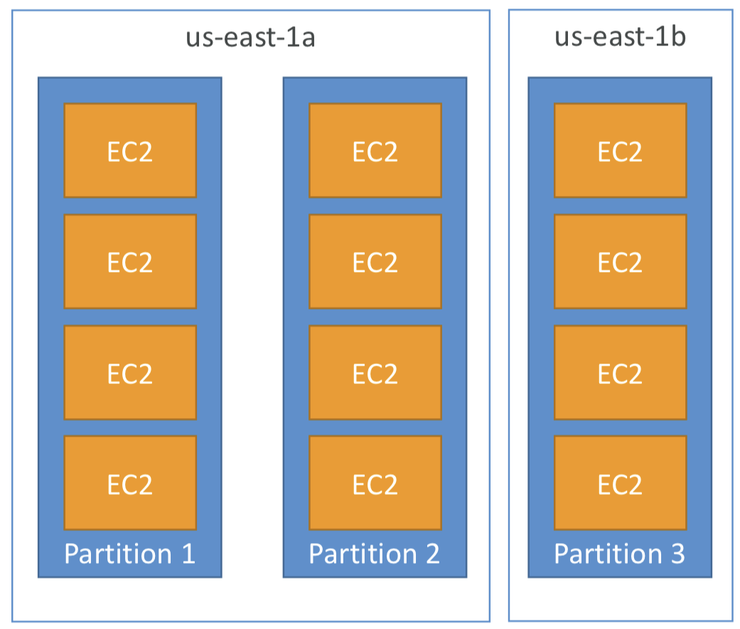 1つのパーティションで障害が発生した場合、そのパーティション内の多くのEC2インスタンスに影響を与える可能性があるが、他のパーティションには影響しない。