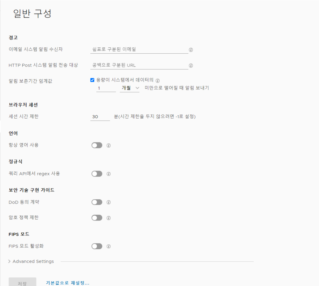 배포 중에 로그를 수집하려는 환경의 요구 사항에 맞게 어플라이언스 설정을 변경할 수 있습니다.