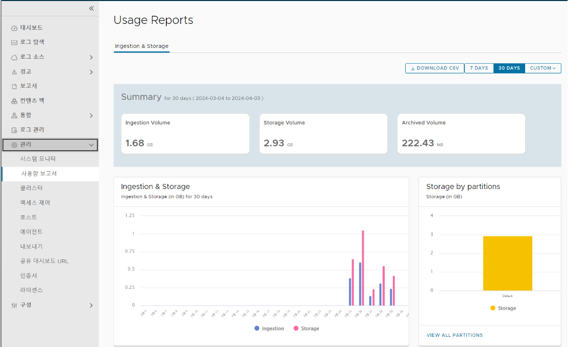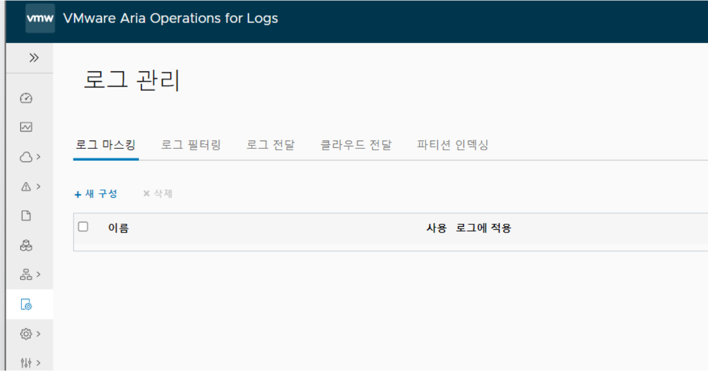 로그 관리 페이지에서 로그 필터링, 로그 마스킹, 로그 전달 및 클라우드 전달을 구성할 수 있습니다. 로그 보존 및 아카이브를 위한 인덱스 파티션을 생성할 수도 있습니다.