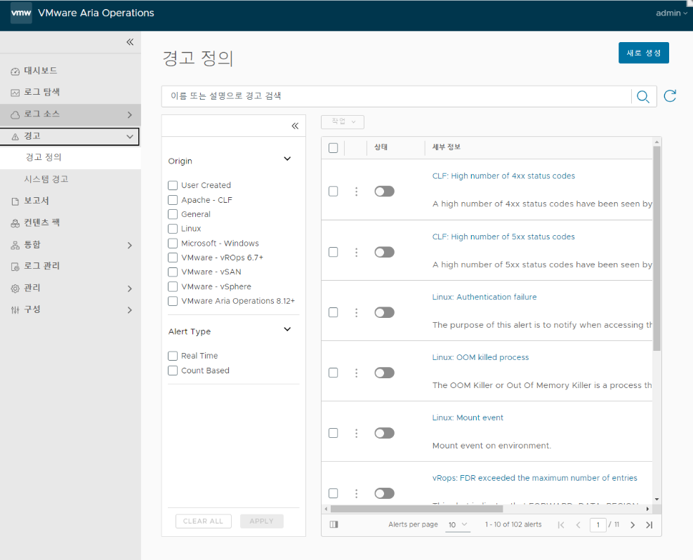 https://docs.vmware.com/kr/VMware-Aria-Operations-for-Logs/index.html : 설명서