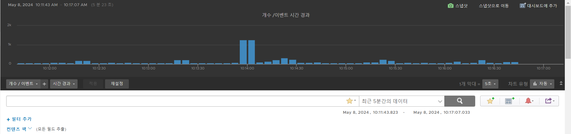대시보드 페이지에서 나중에 조회할 수 있도록 해당 차트를 저장할 수 있습니다.
