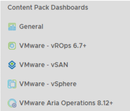 통합 섹션에서 vSphere, VMware Aria Operations, NSX Identity Firewall 및 VMware Aria Operations for Logs (SaaS)와 같은 VMware 제품에 연결하도록 VMware Aria Operations for Logs를 구성할 수 있습니다.