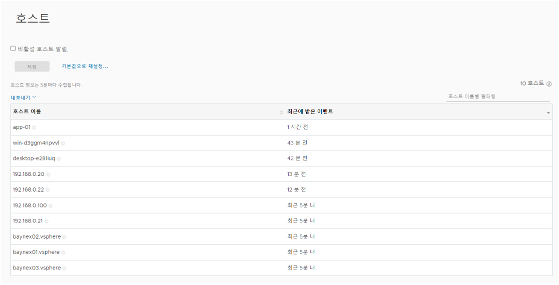 각 ESXi 호스트는 평균 메시지 크기 170바이트/메시지로 초당 최대 10개의 메시지를 보냅니다. 이는 대략 호스트당 하루 150MB에 해당합니다.