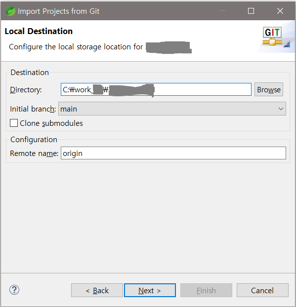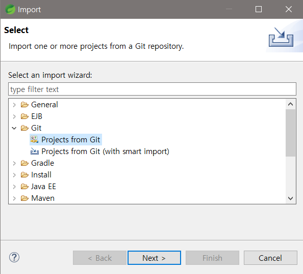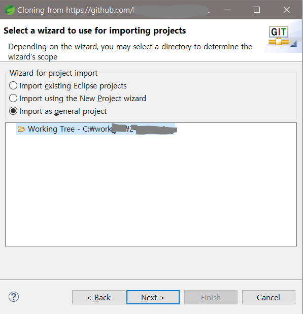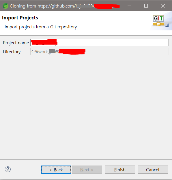 프로젝트 폴더명 설정 > Finish