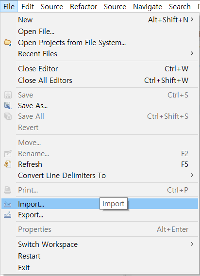 1 .File > Import 메뉴선택