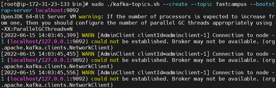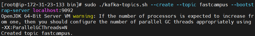 sudo bin/kafka-server-start.sh -daemon config/server.properties