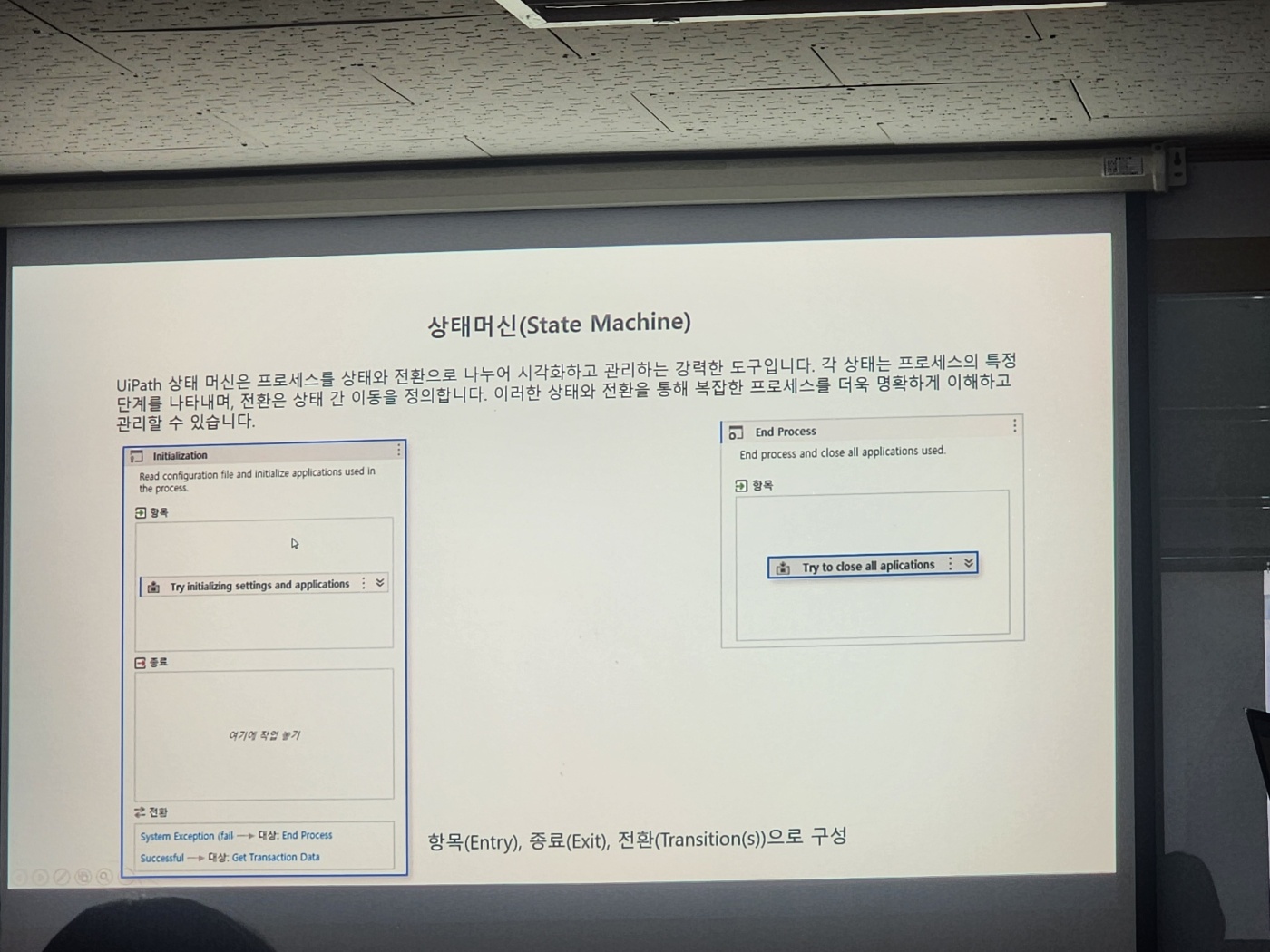 - 안정적인 프로세스 실행 : 각 State의 Entry에서 발생할 수 있는 오류를 Try Catch로 처리하여, 예기치 않은 상황에서도 프로세스를 중단하지 않고 적절히 대처한다