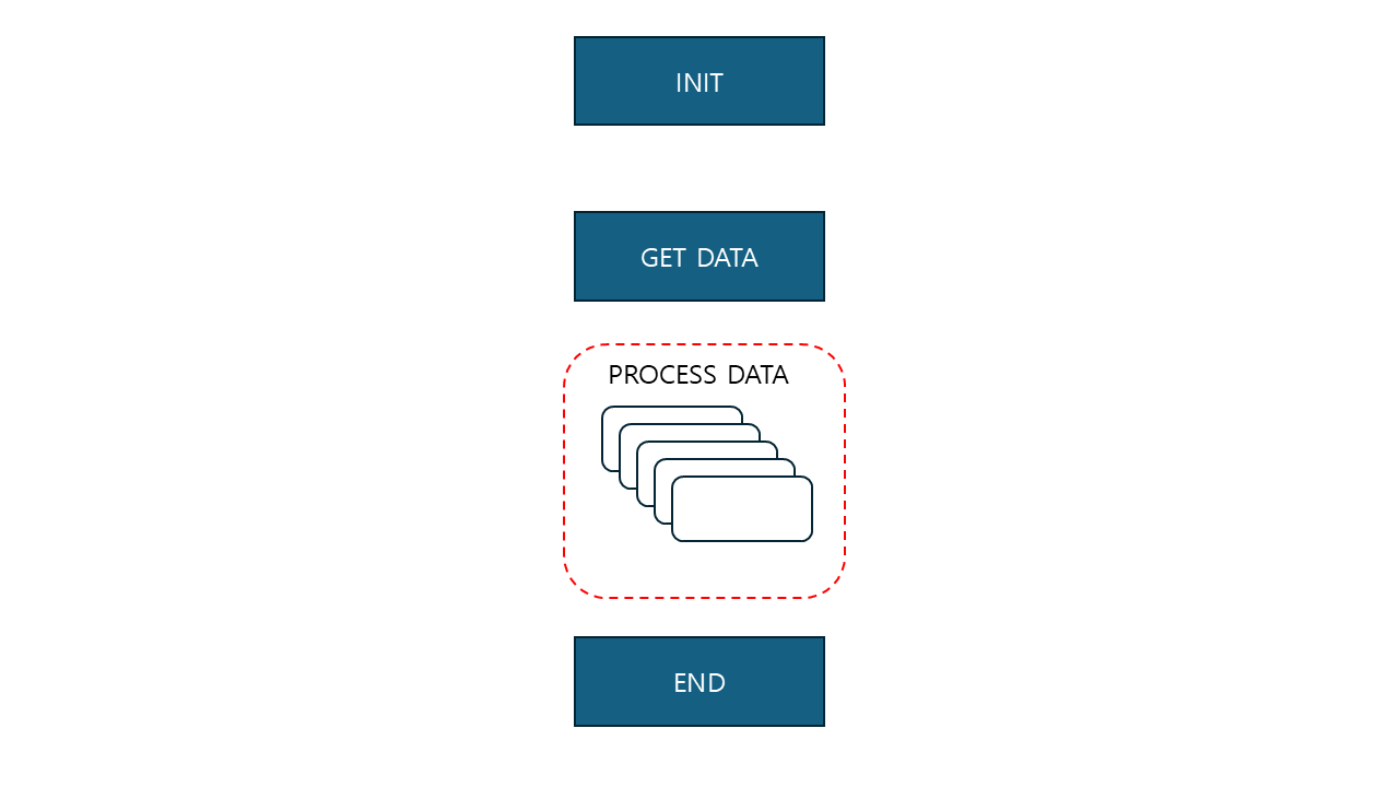 - 데이터 처리를 반복적으로 실행하고 각 실행 마다 다른 데이터 사용