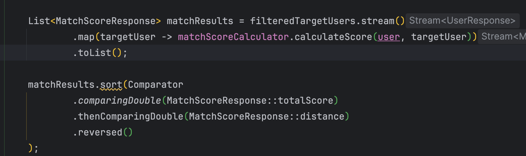 List<MatchScoreResponse> matchResults = filteredTargetUsers.stream()