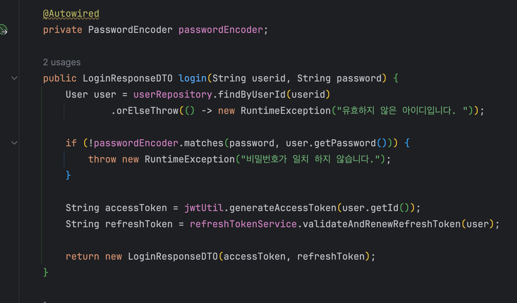 변경 후 로그인 메소드 눈으로 보기도 쉬워졌고 무작정