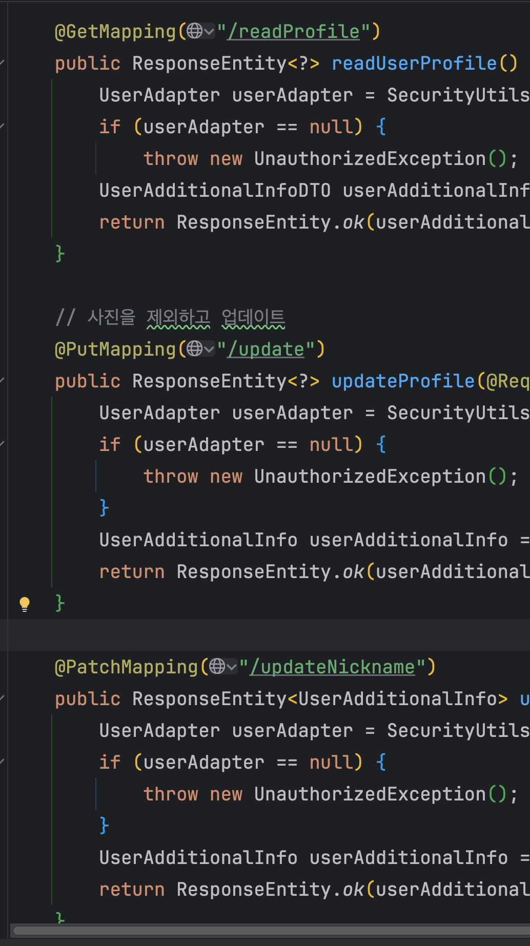 UserApapter == 가 비어있을 때 예외를 던지는 부분이 매번 컨트롤러에서 반복되는 경우