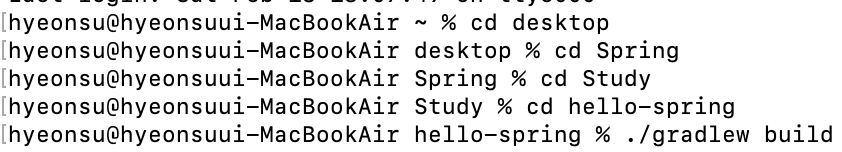 - 빌드가 성공하면 cd build -> cd libs -> ls -arlth -> java -jar hello-spring-0.0.1-SNAPSHOT.jar를 순서대로 입력하면 완료