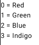 val colorNamesList = listOf("Red", "Green", "Blue", "Indigo")