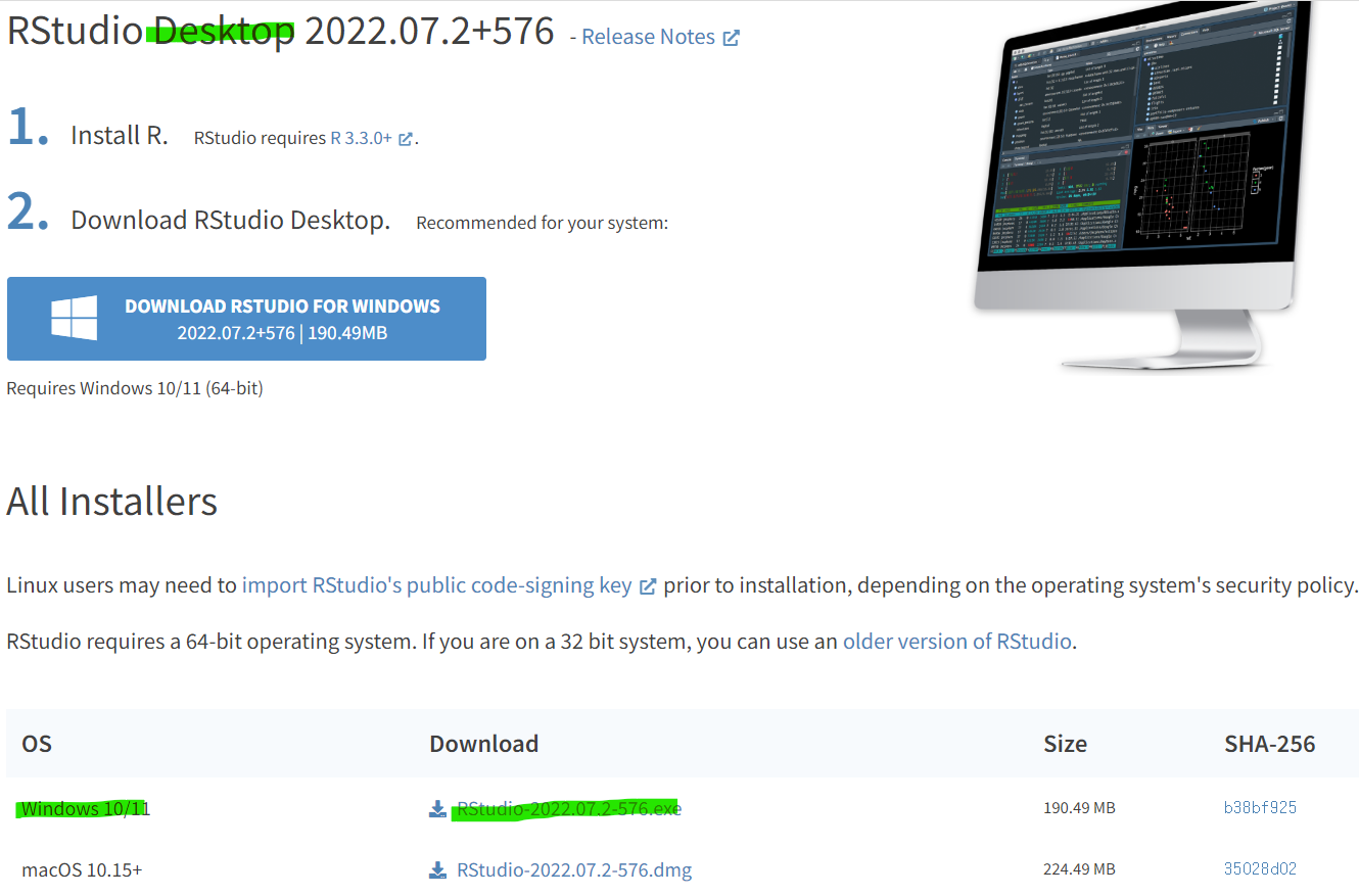 먼저 rstudio 홈페이지에서 다운받아야 한다.