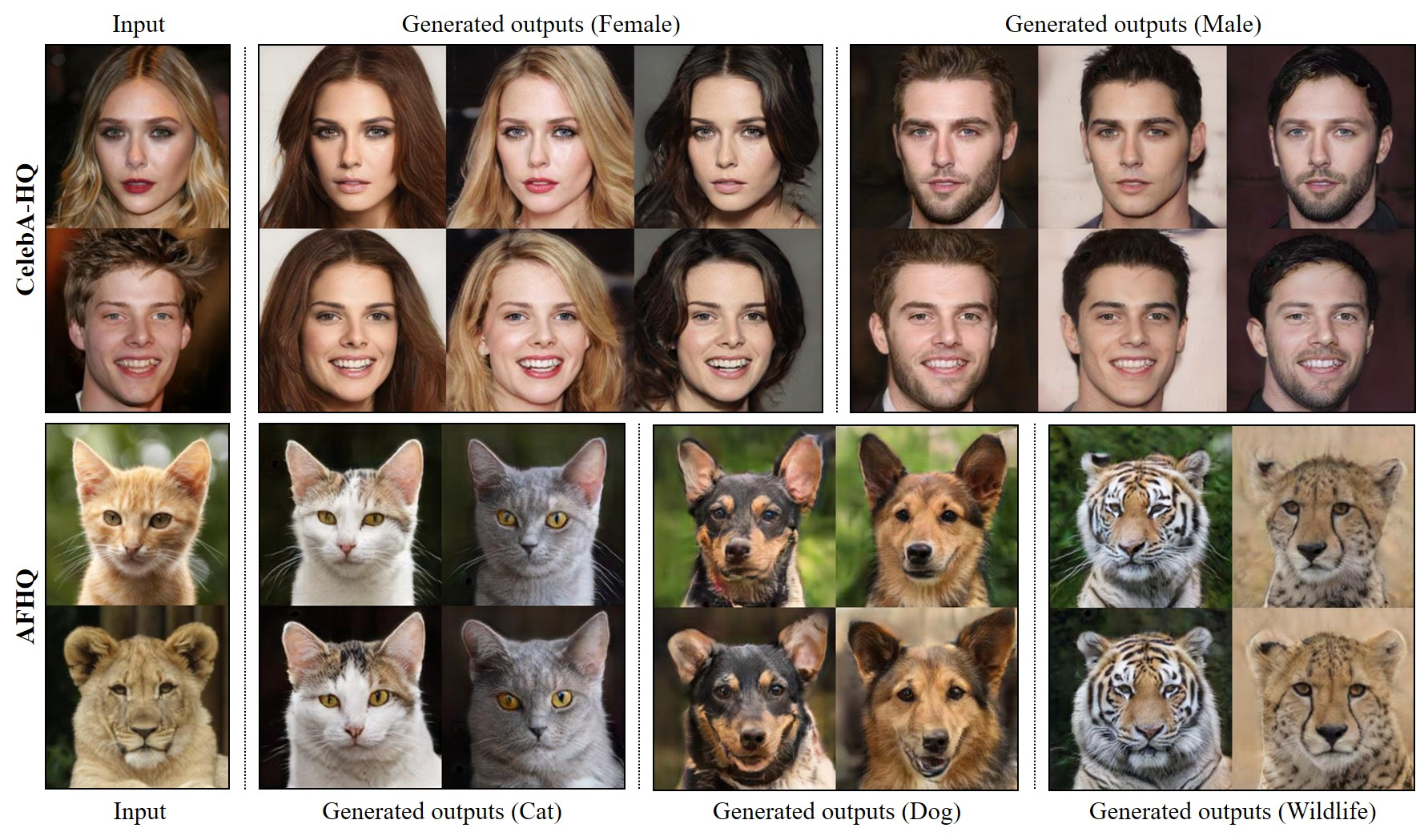 StarGAN v2는 이러한 단점을 보완하고 생성하는 이미지의 다양성을 증가시키고, 다양한 도메인에 대해 확장성을 갖추었다.