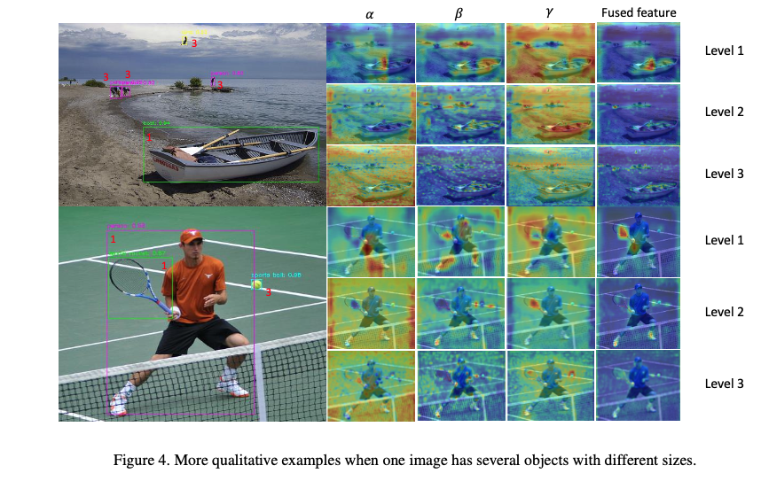 " Therefore, if an image contains both small and large objects, the conflict among features at dif-ferent levels tends to occupy the major part of the feature pyramid."