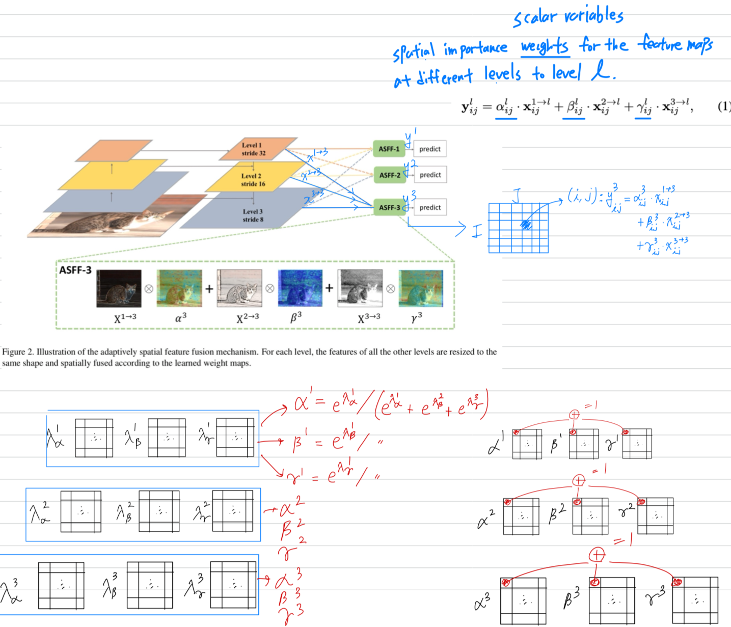 각 location에서 서로 다른 level의 features에 대한 import degrees를 적응적으로 학습한다.
