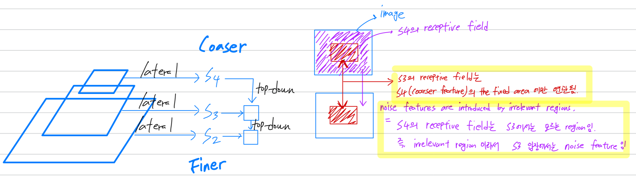반대로, S3 receptive field에 해당하지 않은 S4의 receptive field는 S3 입장에서는 noise feature임.