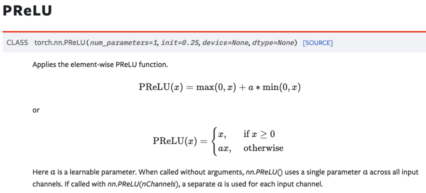 CSPReLU는 모든 channel에서 공유하는 단 하나의 learnable parameter k1가 있는게 차이점이다.
