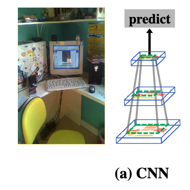 Fig. 1 (a)에 있는 CNN의 hierarchical structure 때문에 pooling, stride, or dilated convolution을 함으로써