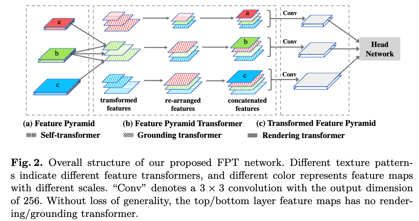 Feature Pyramid Transformer (FPT)는 feature들이 space 및 scales를 전반적으로 interact할 수 있게 한다.