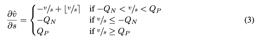 즉, round operations을 그대로 유지하여 후속 연산들의 미분 과정에는 영향을 주지 않도록 하면서, 나머지 모든 연산 (Eq 1과 Eq 2)은 정상적으로 미분한다.