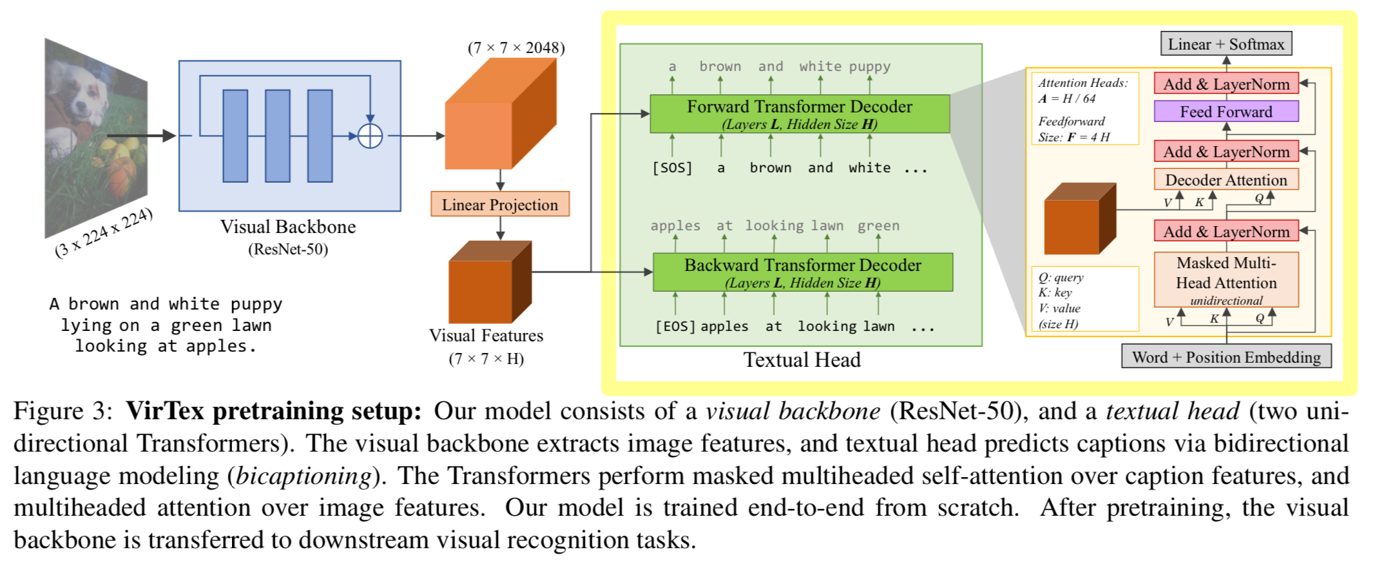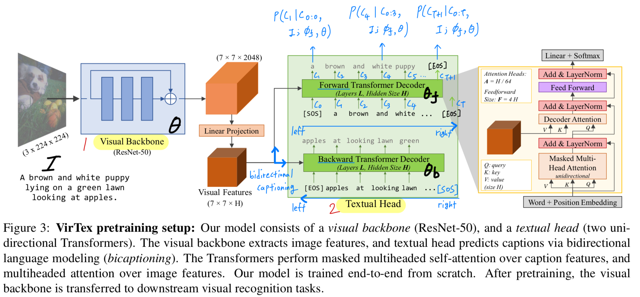 textual head는 각각 forward and backward direction으로 caption을 predict하는
