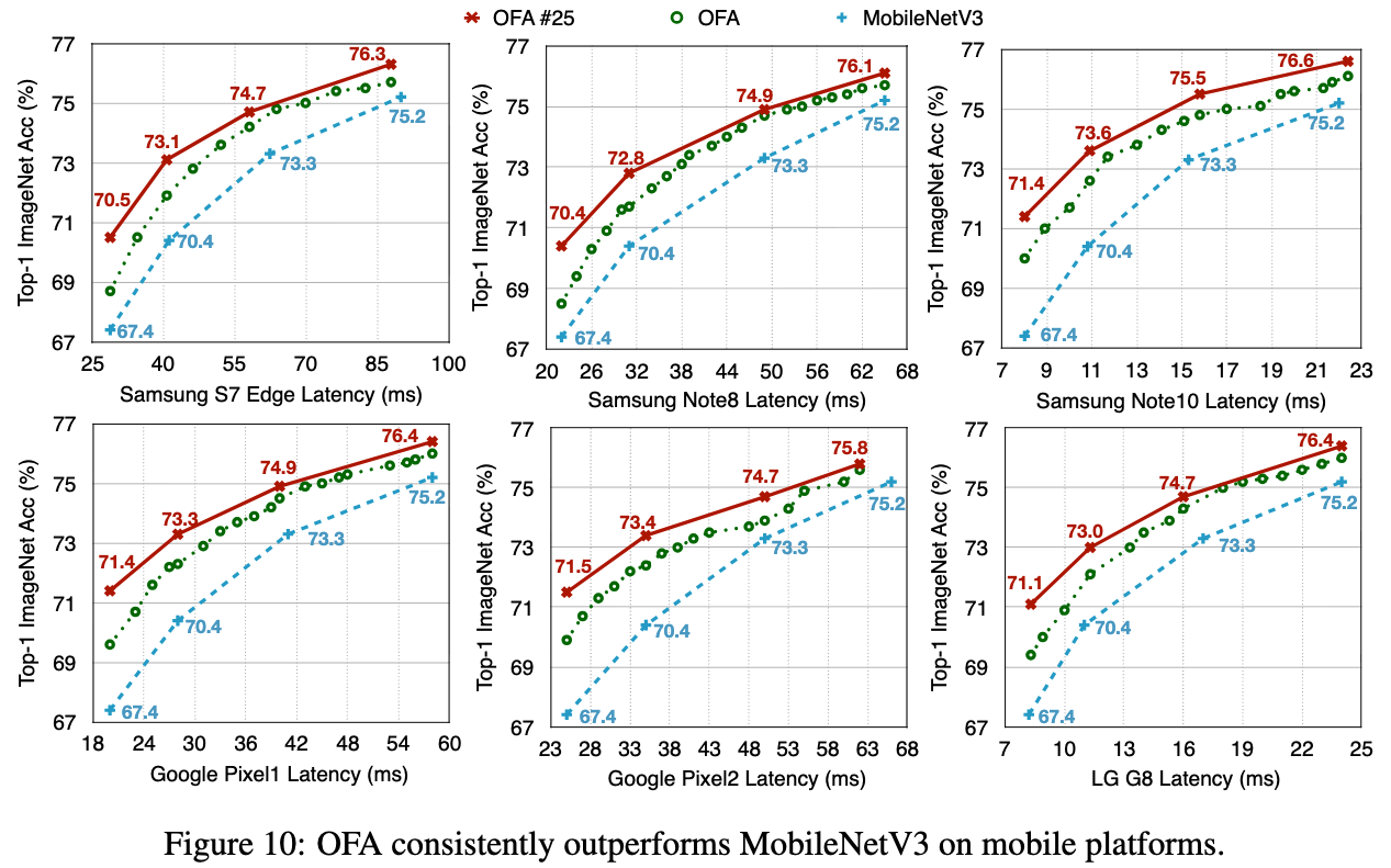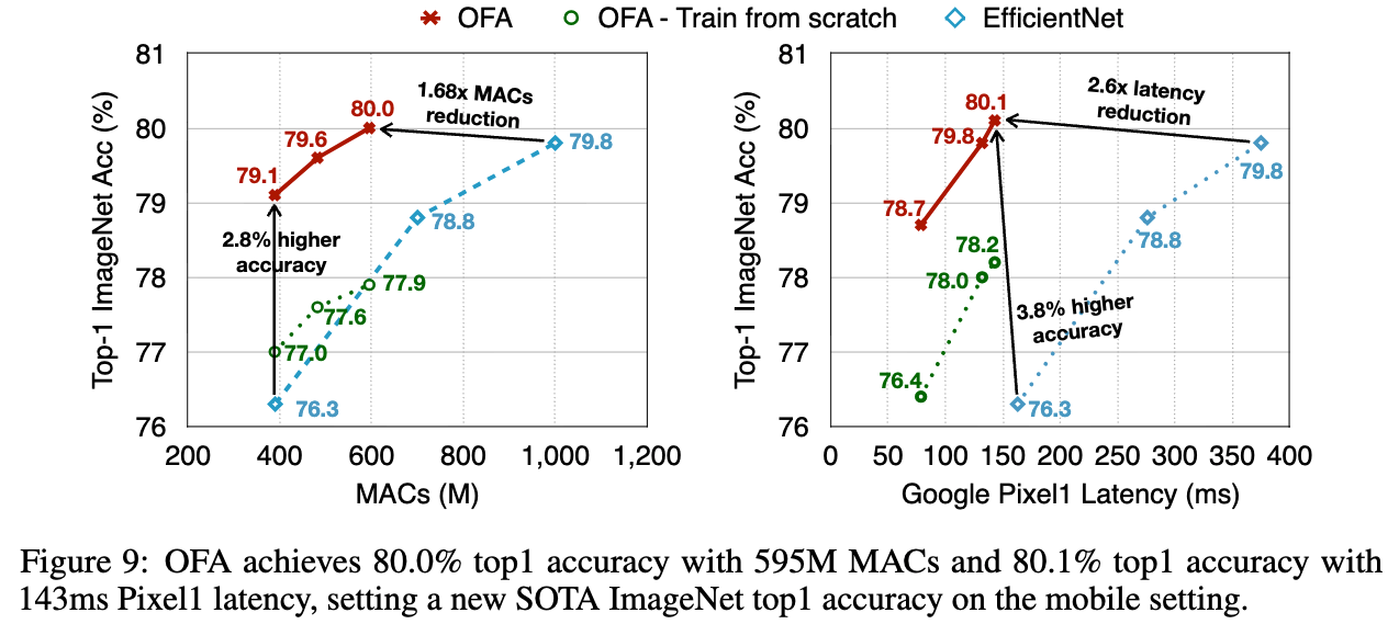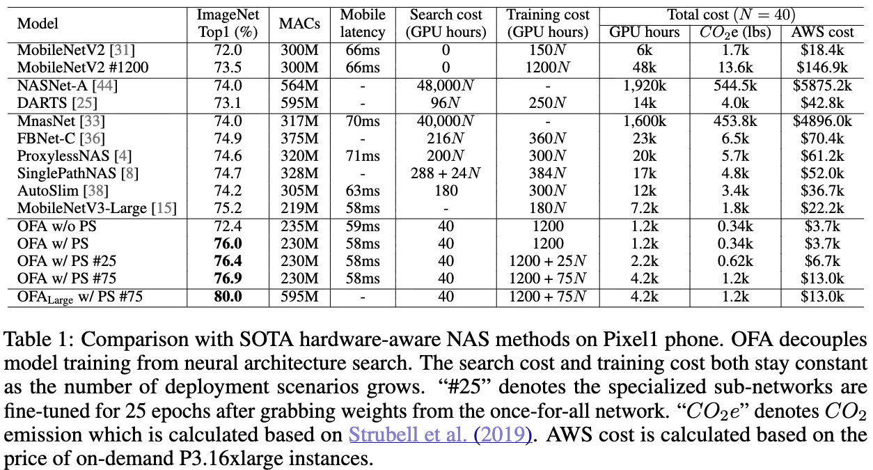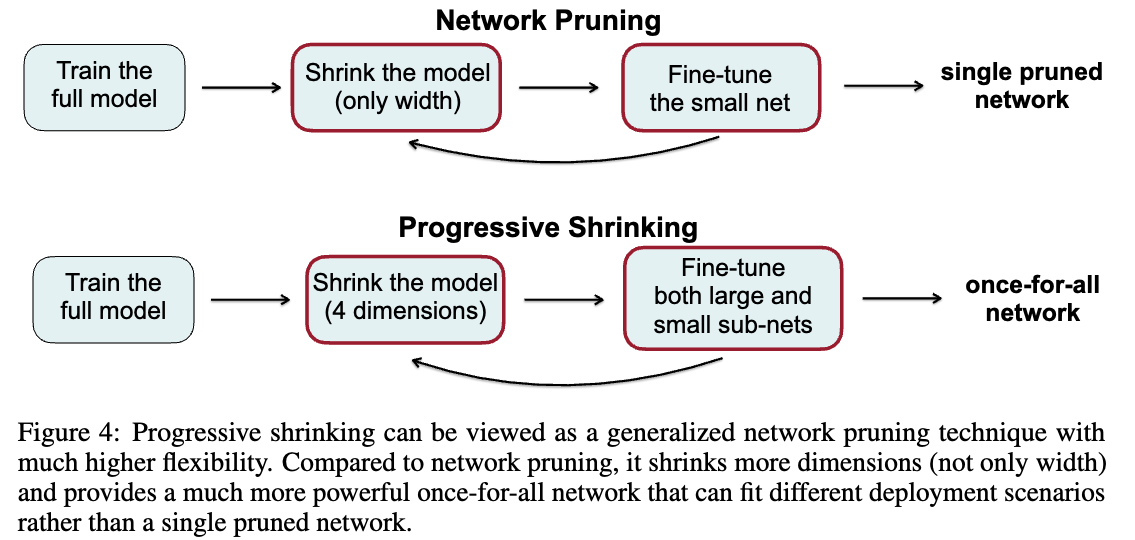 PS로 학습한 OFA는 다양한 HW platforms and latency constraints에 fit할 수 있는 a large number of sub-networks ()를 포함할 수 있다.