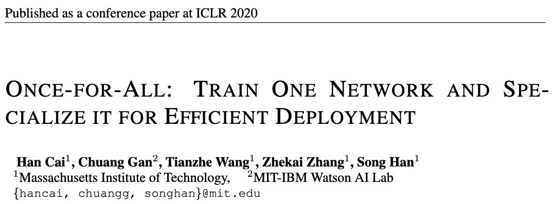 diverse architectural settings을 돕는 a once-for-all (OFA) network를 학습시키는 것을 제안한다.