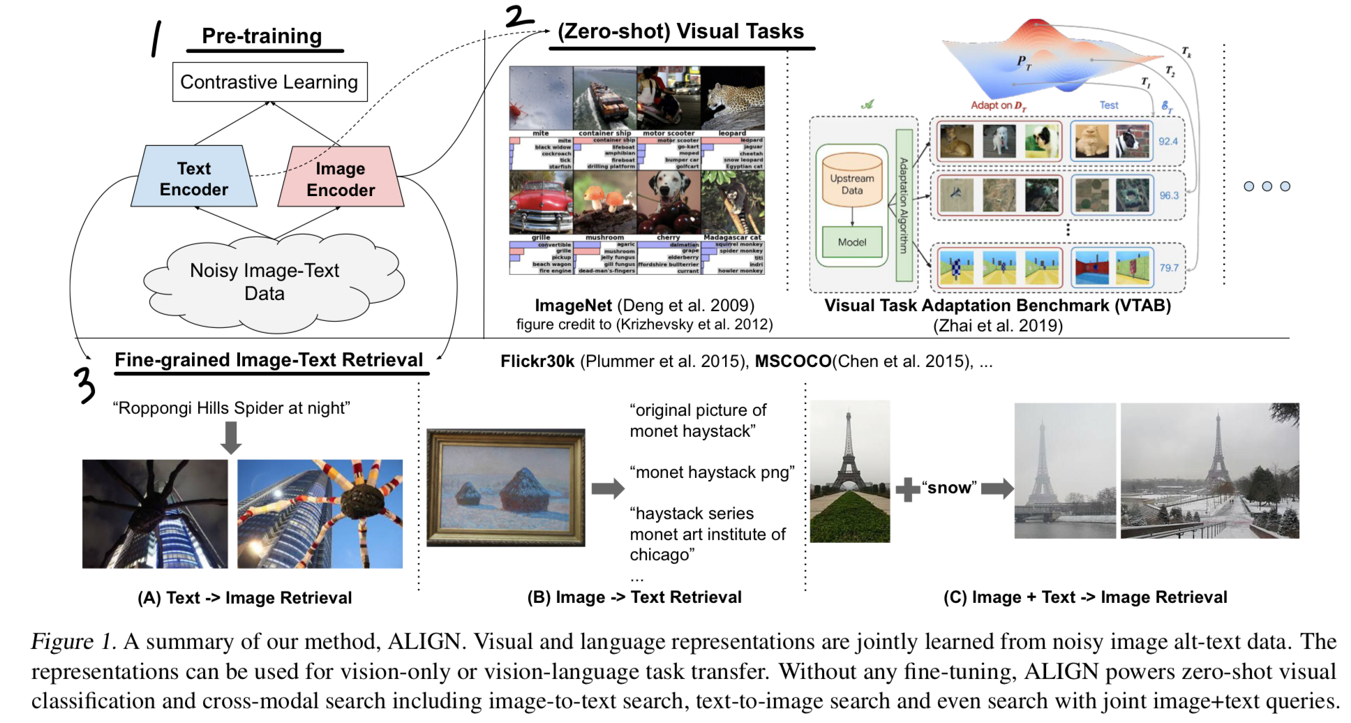 1B(10억) 개 이상의 noisy image alt-text pairs로 구성된 dataset을 활용하여