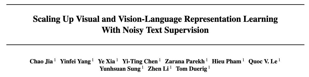 Jia, Chao, et al. "Scaling up visual and vision-language representation learning with noisy text supervision." International conference on machine learning. PMLR, 2021.