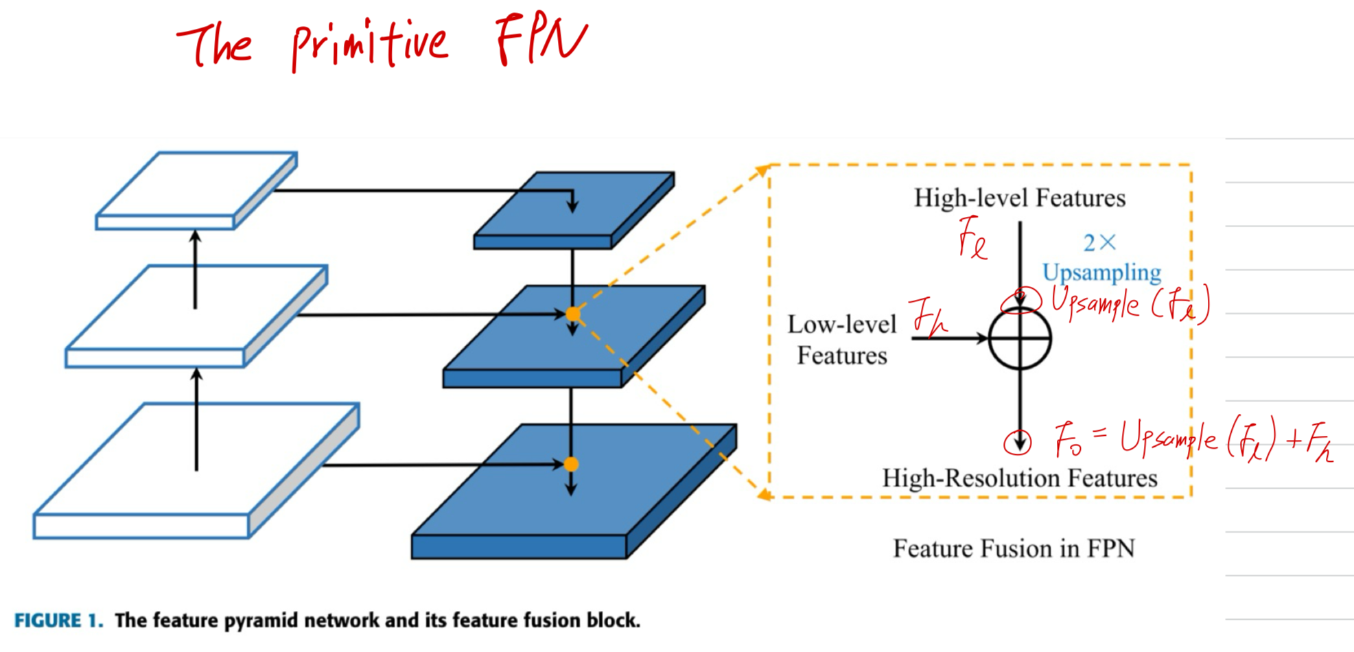 The primitive (원래의) FPN은 오로지 traditional interpolation method and multi-level feature fusion by addition에 의해서만 feature upsampling을 수행했다.