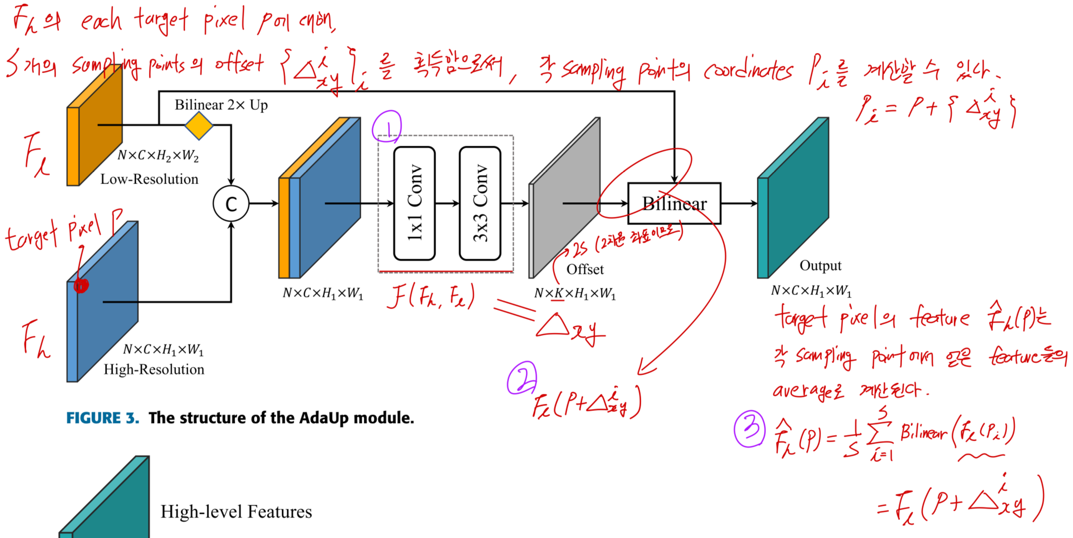 the output feature 이 AdaUp을 통해 얻어진 high resolution feature이다.