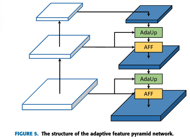 각각 adaptive feature upsamling (AdaUp)과 adaptive feature fusion (AFF)를 도입한다.