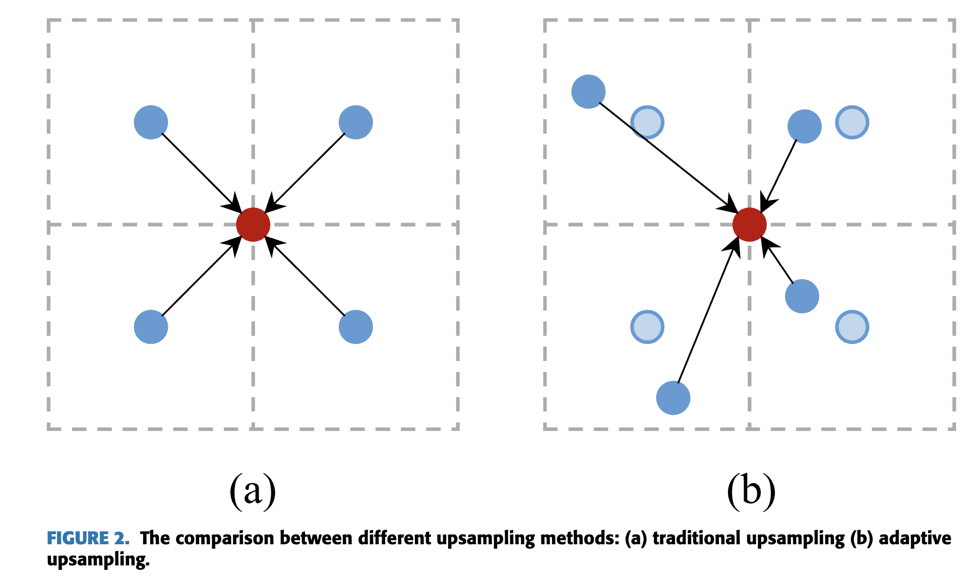 an adaptive feature pyramid network는 two major designs, 즉 adaptive feature upsampling and adaptive feature fusion을 포함한다.
