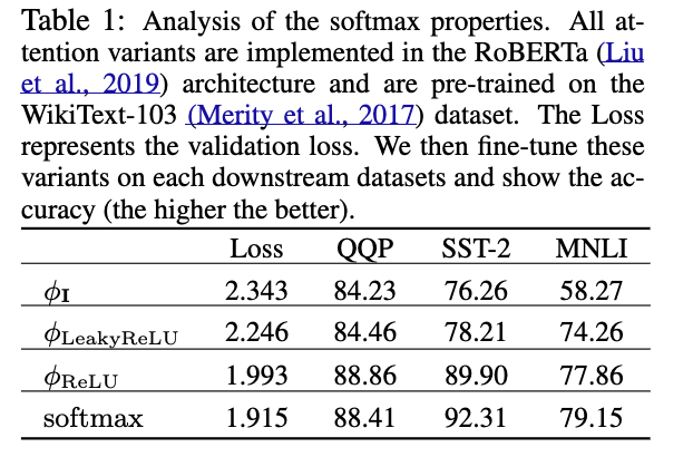 그러나 softmax attention이 실험적으로는 좋은 성능을 보임에도 불구하고, 그것의 핵심적이고 필수적인 특성이 무엇인지에 대해서는 the original transformer paper and follow-up works에서도 명확하게 규정되지 않았다.