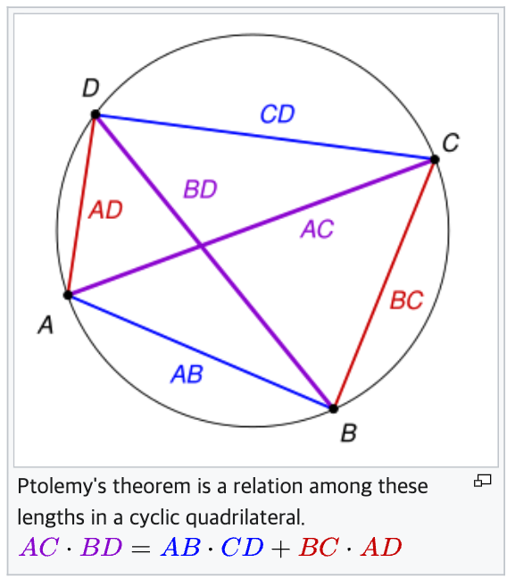 Ptolemy's theorem에 의하여, 우리는 이 formulation을 다음과 같이 decompose한다: