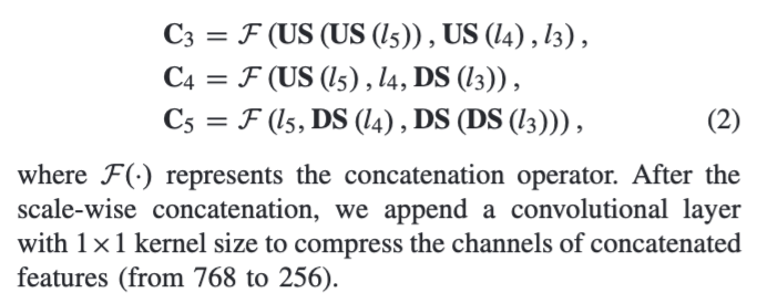 그리고나서, 우리는 서로 다른 feature pyramids로부터 same resolution의 feature maps들을 concatenate했다.