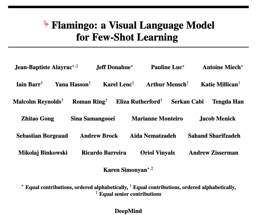 For brevity, we refer to the last as Flamingo throughout the paper.