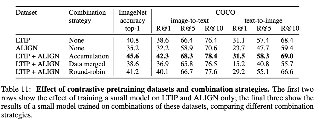 a carefully chosen mixture of complementary large-scale multimodal data coming only from the web 만을 이용해 학습했다.