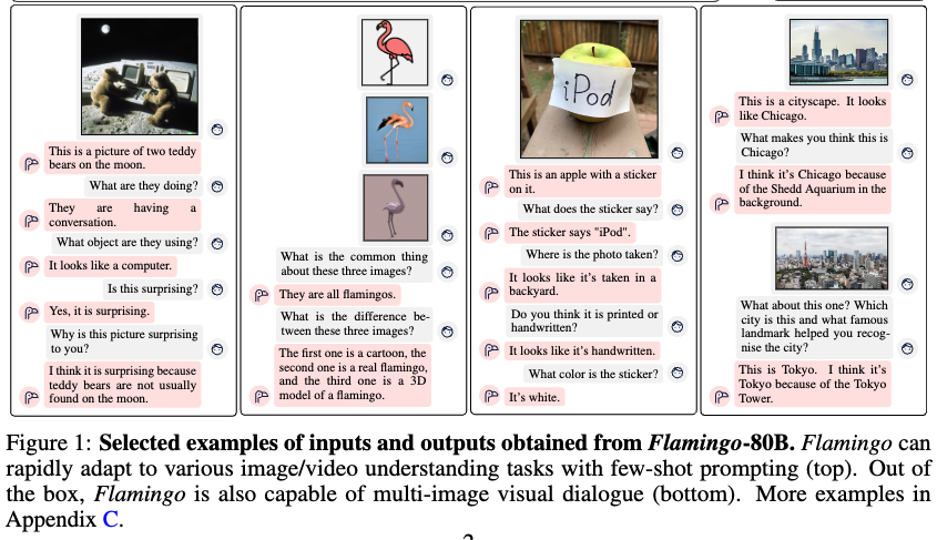 - 우리는 a few input/output examples만으로도 image captioning, visual dialogue(대화), or visual question-answering과 같은 다양한 multimodal tasks를 수행할 수 있는 Flaimngo family of VLMs을 제안한다.