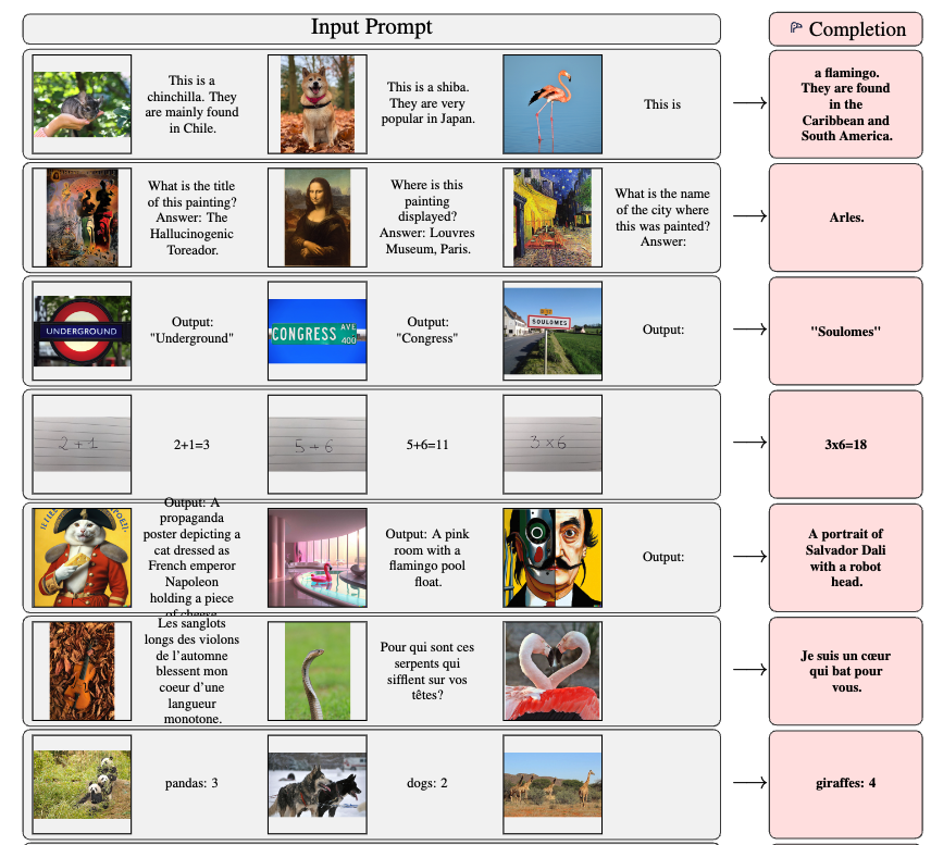 - LM과의 차이점은, model이 text와 images and/or videos가 interleaved된(임의의 순서로 섞여 있는) multimodal prompt를 입력으로 처리할 수 있어야 한다는 점이다.