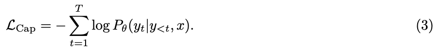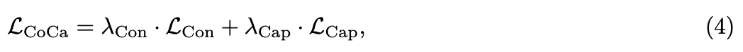 multimodal decoder outputs에 대해 text token을 autoregressively하게 predict하는 captioning loss를 함께 적용한다.