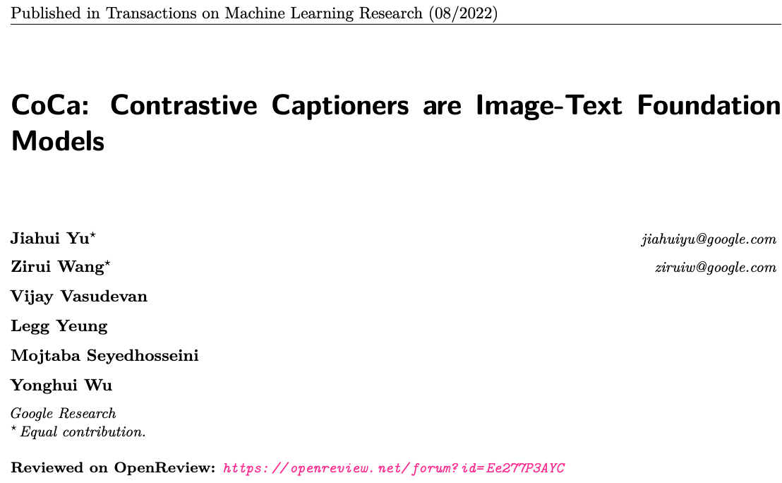 이를 위해 Contrastive Captioners (CoCa)라는 simple model family를 제안하며,