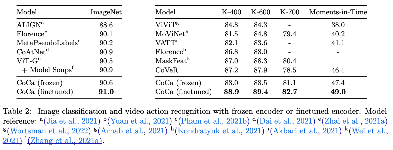 image classification에서 cross-entropy loss로 pretraind된 single-encoder models의 효과를 보여줬다.