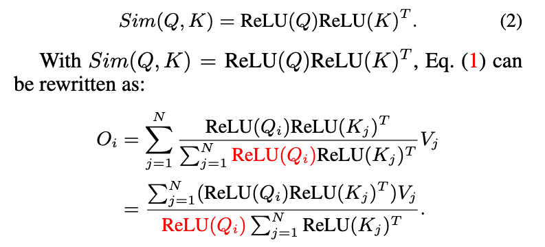이 연구에서, 우리는 both the global receptive field and linear computational complexity를 달성하기 위해 ReLU-based global attention을 사용했다.