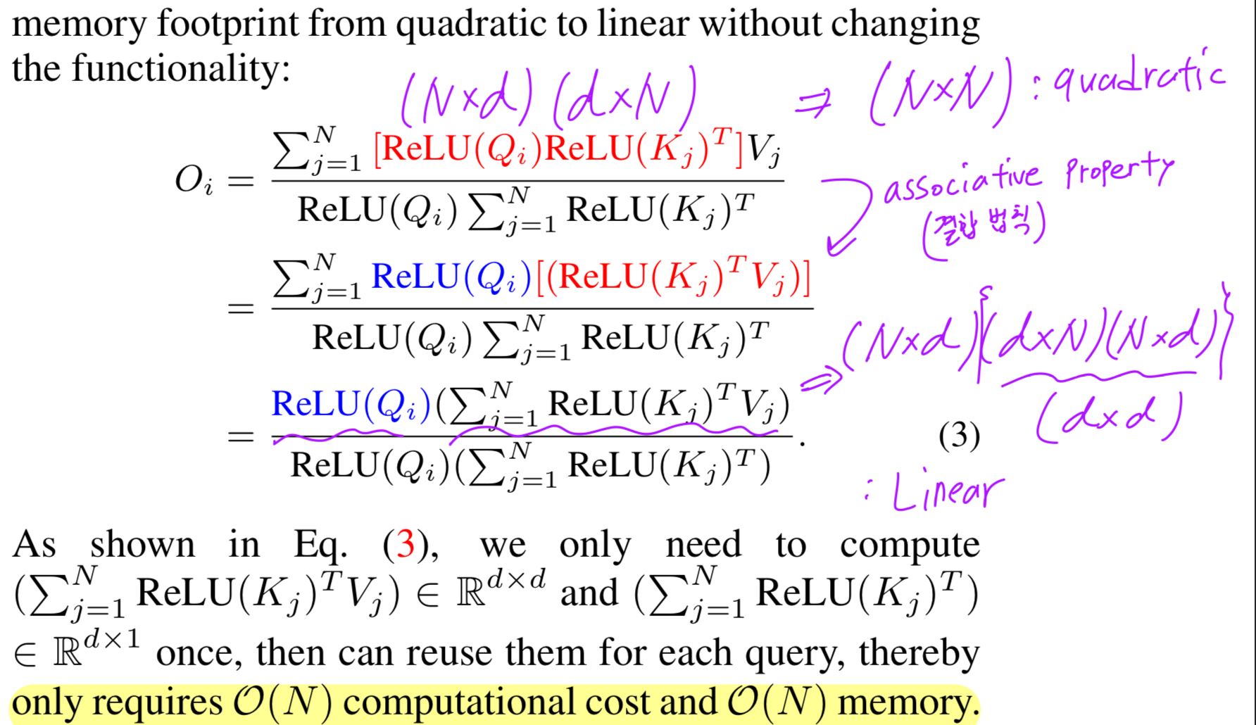 memory footprint from quadratic to linear without changing the functionality를 수반할 수 있다: