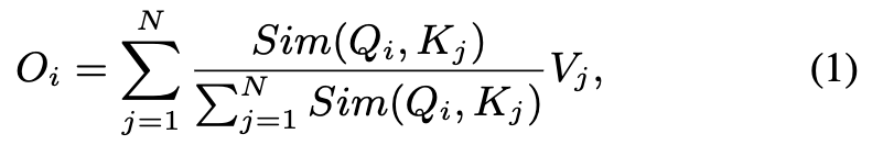 teh similarity function 일 때, Eq. (1)은 the original self-attention이 된다.